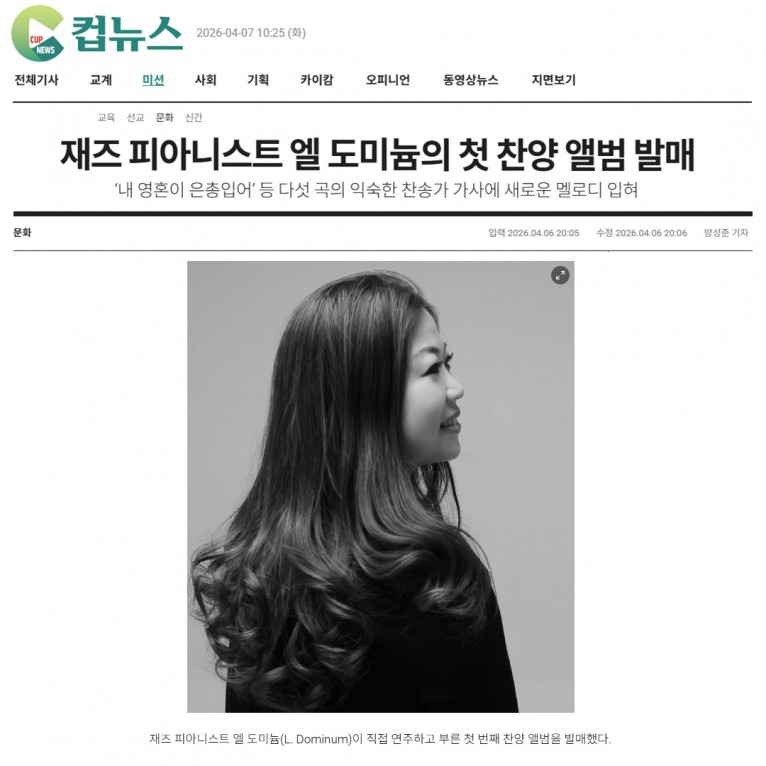 뮤직타임 [기사] 재즈 피아니스트 엘 도미늄(L. Dominum)의 첫 찬양 앨범 발매(크리스챤연합신문 컵뉴스)