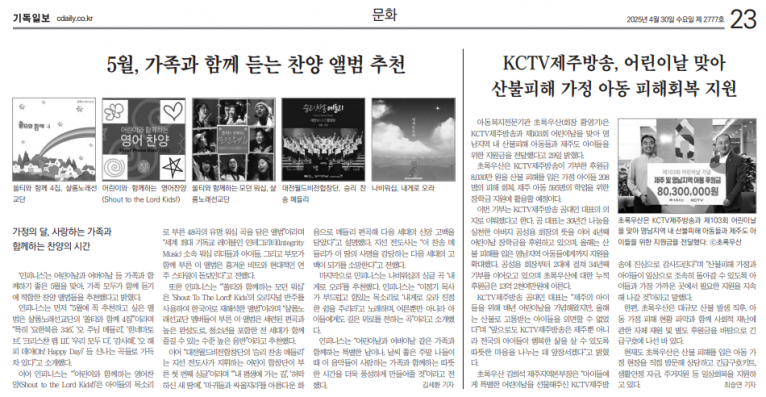 뮤직타임 [기획기사] 5월, 가족과 함께 듣는 찬양 앨범 추천(기독일보)