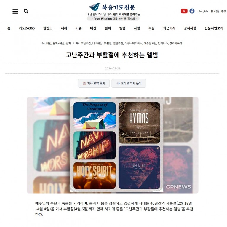 뮤직타임 [기획기사] 고난주간과 부활절에 추천하는 앨범(복음기도신문)